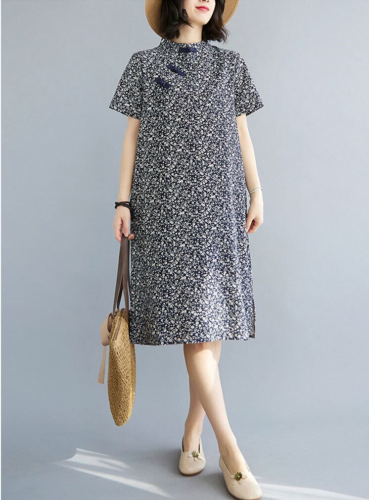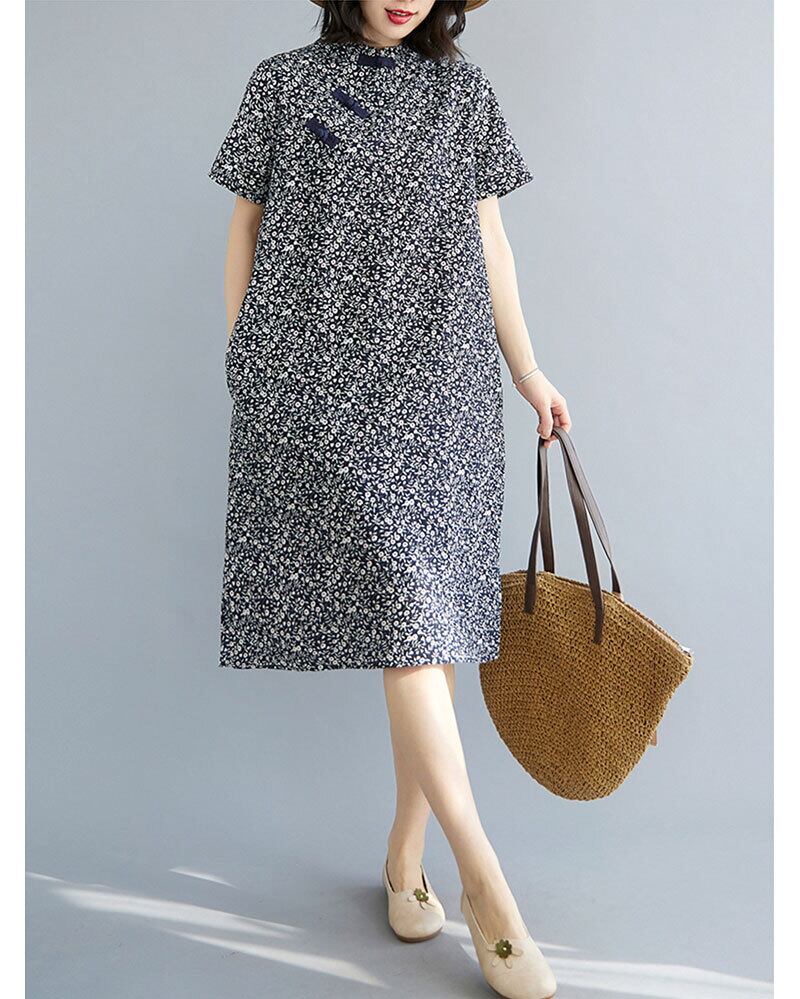 チャイナ服 モダンチャイナワンピ ゆったり 半袖 小花柄 zs217