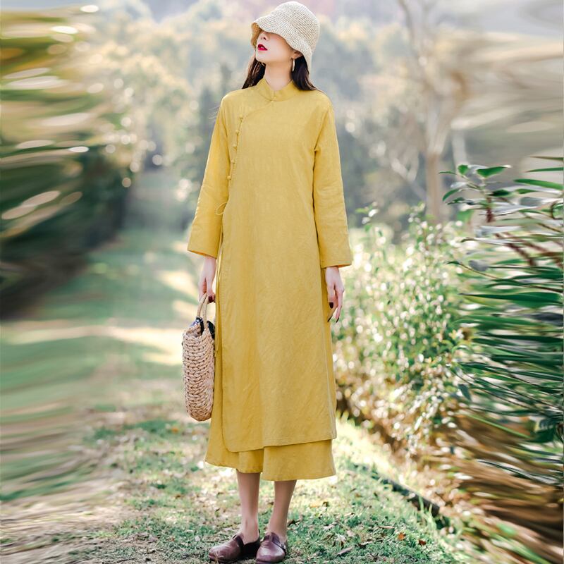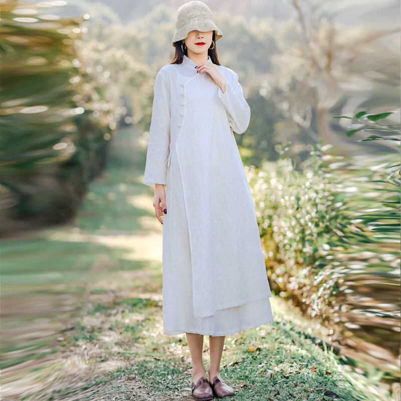 トップスも普段着も揃うチャイナ服専門店chaiです。こちらはチャイナ服 ワンピース シンプル単色 長袖 ロング zl276の商品ページです。ロング丈のチャイナワンピースで、シンプルで素朴な風合いが使いやすいアイテムです。