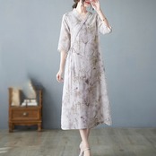 トップスも普段着も揃うチャイナ服専門店chaiです。こちらはチャイナ服 ワンピース ゆったり 落ち着いた風合い ロング丈 zl278の商品ページです。斜め合わせの涼しげなワンピースで、春夏の普段着にぴったりのアイテムです。