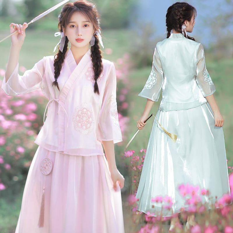 チャイナ服 普段着 斜め合わせ 刺繍トップス 七分袖 zh362