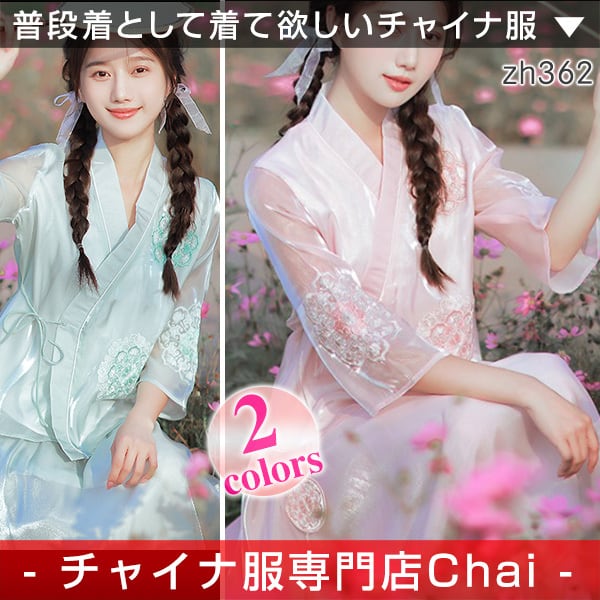 トップスも普段着も揃うチャイナ服専門店chaiです。こちらはチャイナ服 普段着 斜め合わせ 刺繍トップス 七分袖 zh362の商品ページです。斜め合わせの涼しげなチャイナトップスで、zq74と上下セットで購入できるアイテムです。