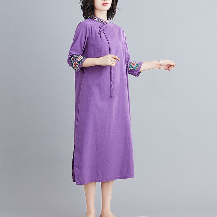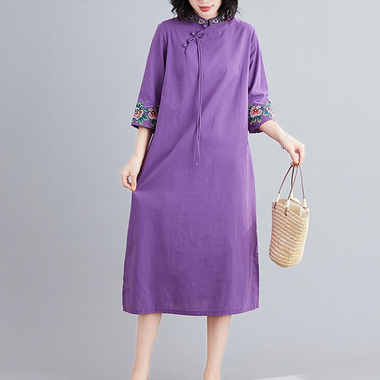 チャイナ服 ワンピース 五分袖 ロング丈 ゆったり zl281