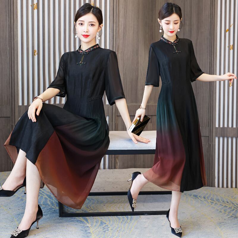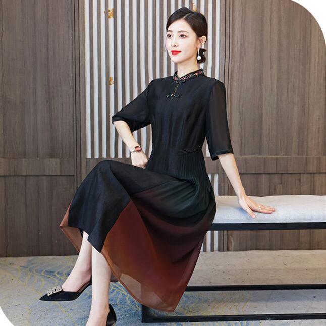 トップスも普段着も揃うチャイナ服専門店chaiです。こちらはチャイナ服 ワンピース チャイナドレス ゆったり 落ち着いた風合い zl285の商品ページです。黒を基調とした上品なチャイナワンピースで、落ち着いた風合いが人気のアイテムです。