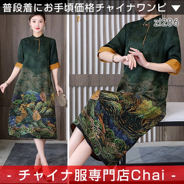 トップスも普段着も揃うチャイナ服専門店chaiです。こちらはチャイナ服 ワンピース 落ち着いた風合い チャイナドレス zl286の商品ページです。新緑を基調とした上品なチャイナワンピースで、落ち着いた風合いが人気のアイテムです。
