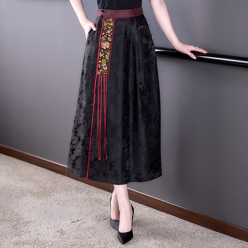 トップスも普段着も揃うチャイナ服専門店chaiです。こちらはチャイナスカート 刺繍 装飾スカート zq75の商品ページです。装飾が素敵なチャイナスカートで、チャイナトップスと合わせるのにぴったりのアイテムです。