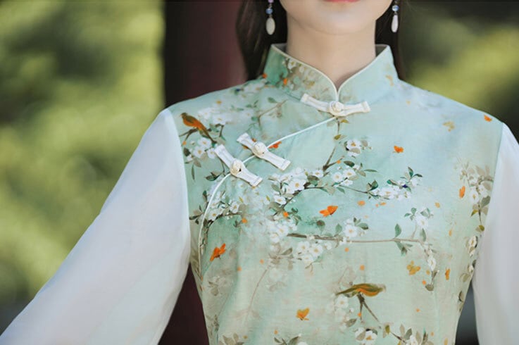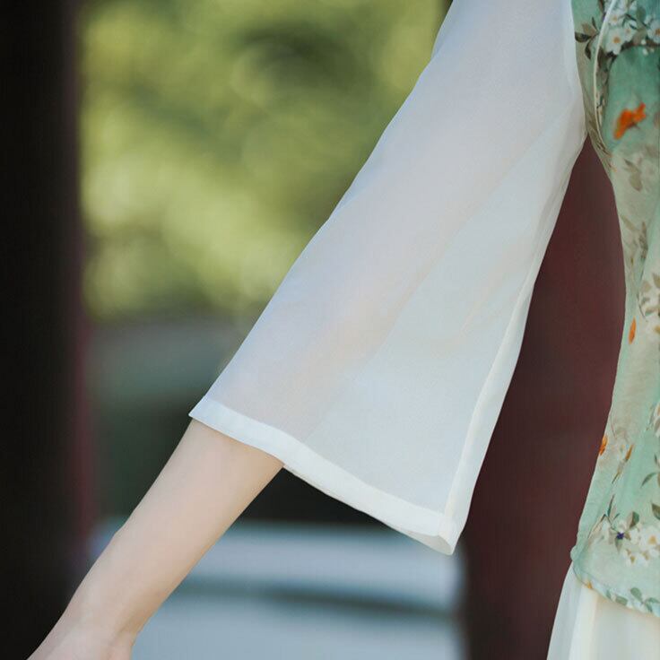 トップスも普段着も揃うチャイナ服専門店chaiです。こちらはチャイナ服 トップス シフォンスリーブ シャツ 花柄 チャイナボタン zh368の商品ページです。袖がシフォンになった涼しげなチャイナトップスで、普段着しやすいチャイナ服です。