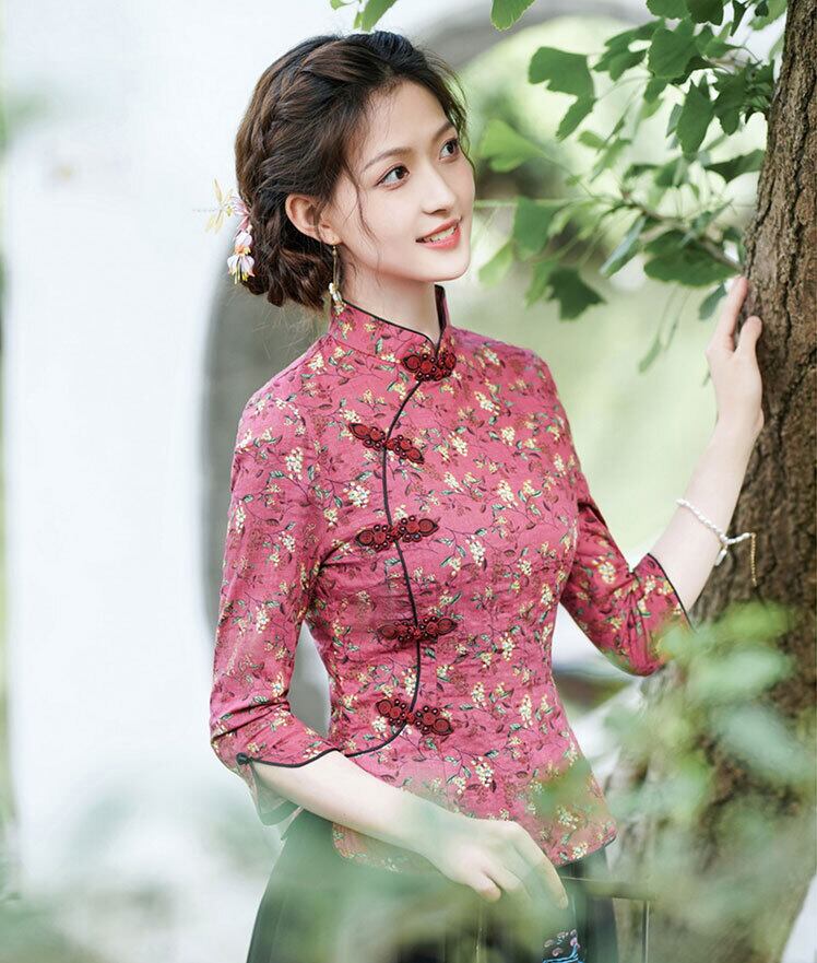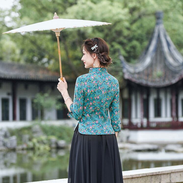 チャイナトップス 普段着 落ち着いた風合い 花柄 チャイナ服 zt363