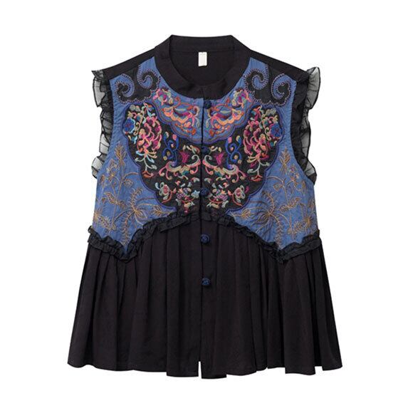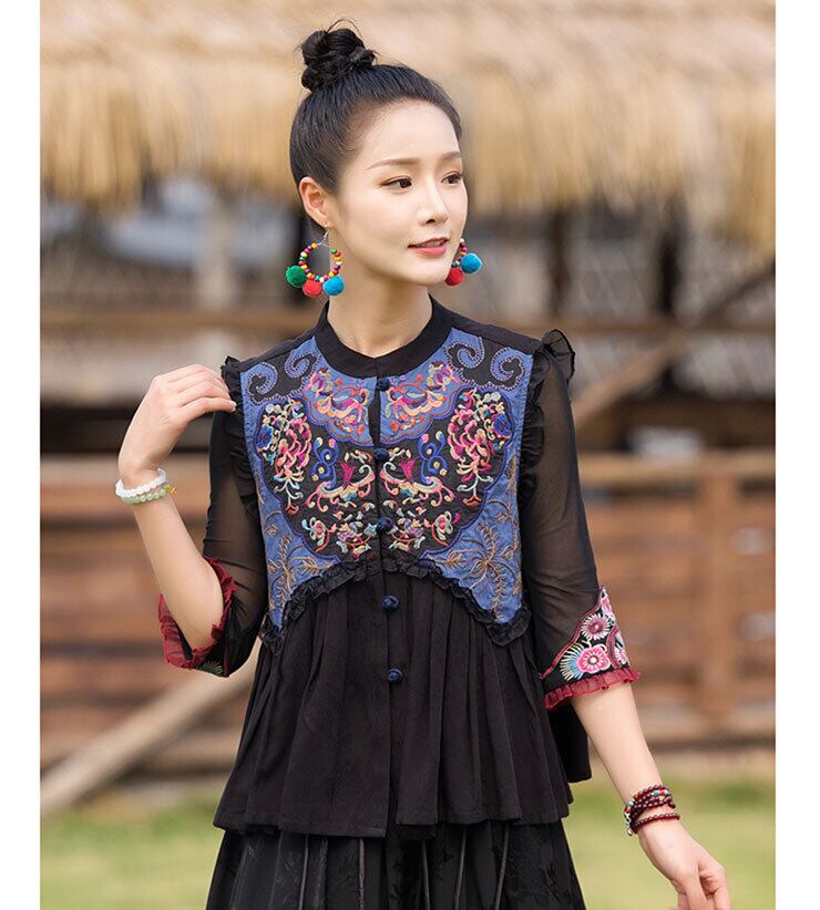チャイナ服 トップス 刺繍 袖なし ノースリーブ 薄手ベスト zh381