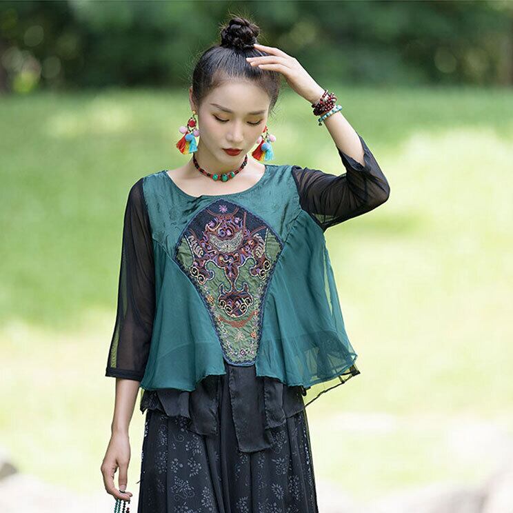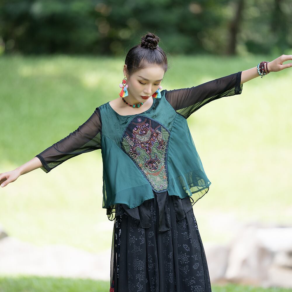 チャイナ服 トップス 刺繍 透け感 装飾トップス zt374