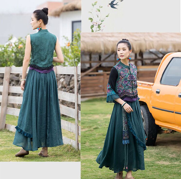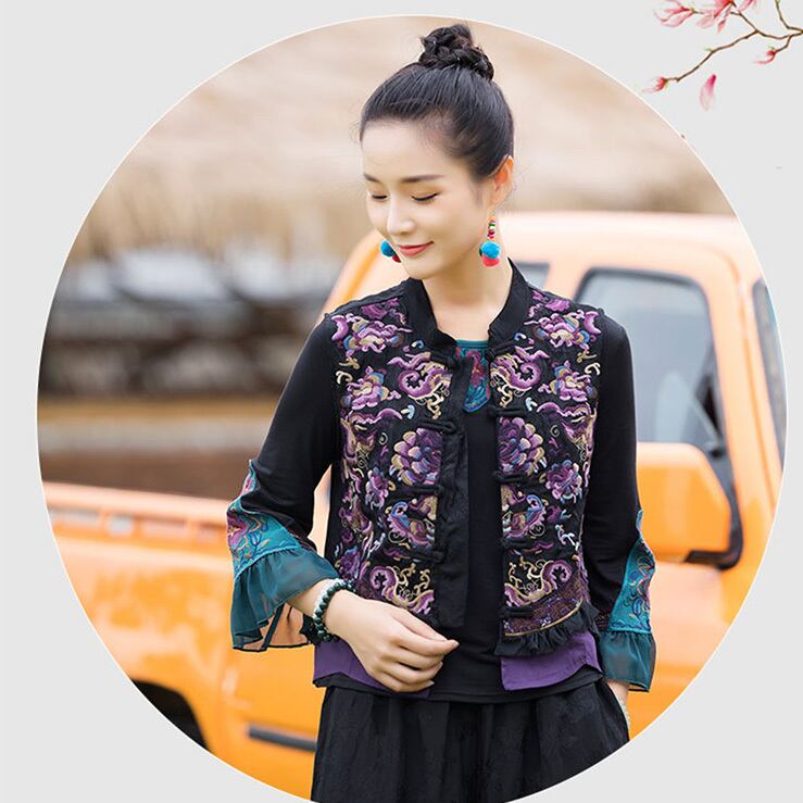 チャイナ服 トップス 刺繍 ジレ 袖なし ノースリーブ 薄手ベスト zv40