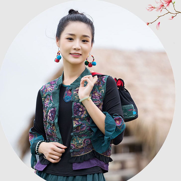 トップスも普段着も揃うチャイナ服専門店chaiです。こちらはチャイナ服 トップス 刺繍 ジレ 袖なし ノースリーブ 薄手ベスト zv40の商品ページです。刺繍の凝った袖のない薄手のジレで、チャイナファッションの重ね着にぴったりのトップスです。