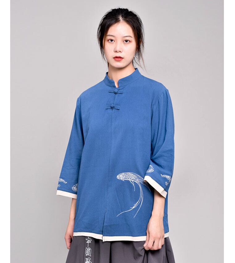チャイナ服 トップス ゆったりオーバーサイズ 男女兼用 チャイナトップス 鯉 刺繍 zt375
