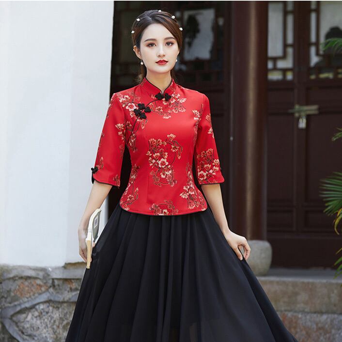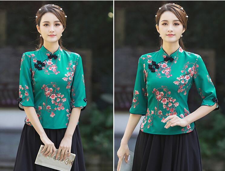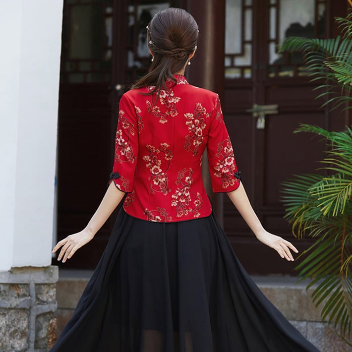 チャイナ服 トップス 民族衣装 五分袖 花柄 二胡衣装 zt377