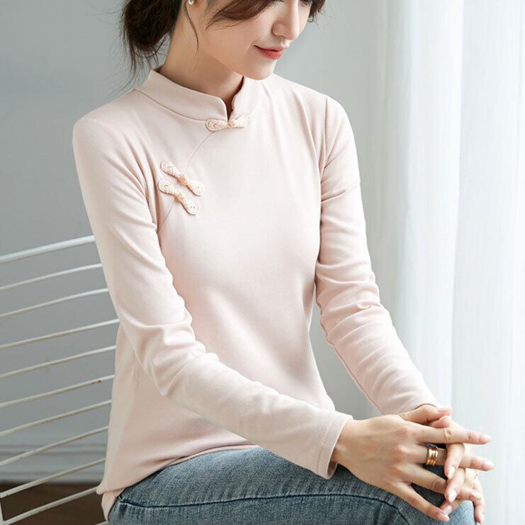 チャイナ服 普段着 トップス ロンT 長袖 カットソー 無地 zt383