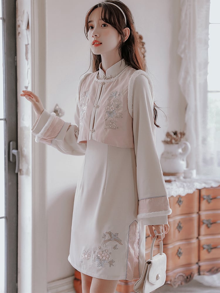 トップスも普段着も揃うチャイナ服専門店chaiです。こちらはチャイナドレス セットアップ スリットワンピ チャイナベスト 2点セット zw48の商品ページです。フェミニンで可愛いスリットワンピとチャイナベストの2点セットで、素敵な刺繍が人気のチャイナアイテムです。