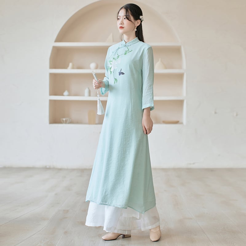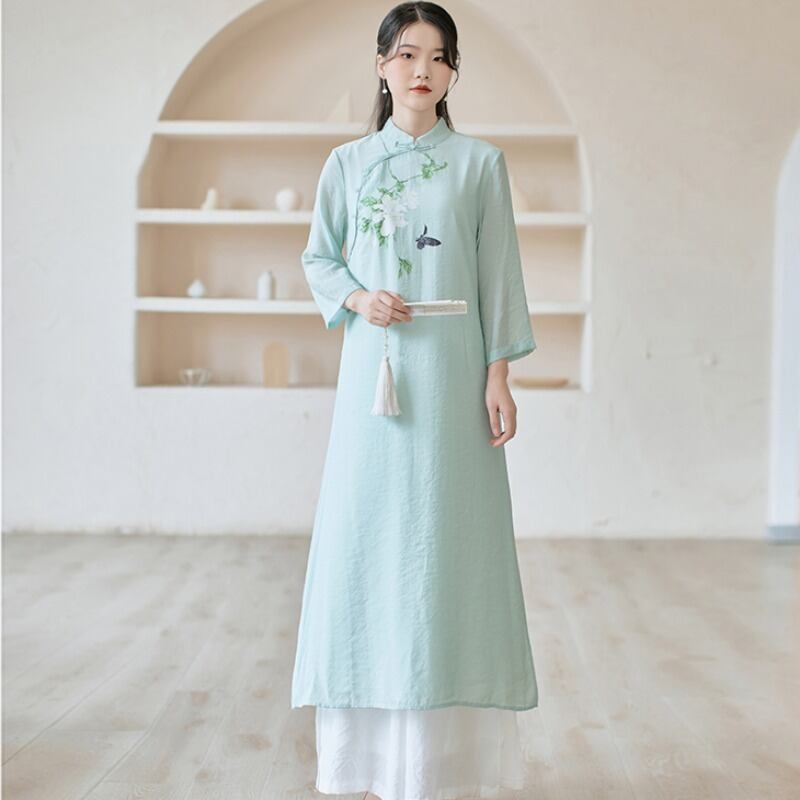 チャイナドレス 普段着 落ち着いた風合い 茶師 禅 二胡衣装 zl306