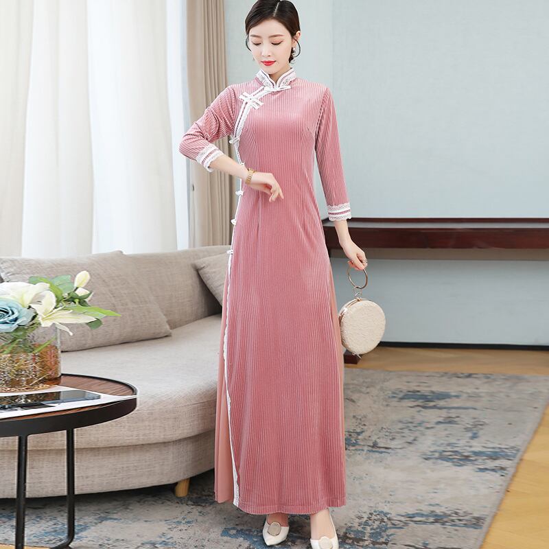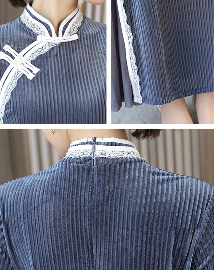 トップスも普段着も揃うチャイナ服専門店chaiです。こちらはチャイナドレス 普段着 パーティドレス 上品な風合い ストライプ zl309の商品ページです。上品な風合いのロングワンピースで、二胡衣装やパーティドレスなどにもぴったりのアイテムです。