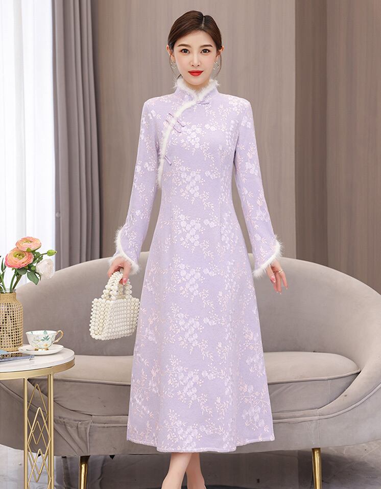 チャイナドレス 普段着 パーティドレス 秋冬 上品な風合い zl310