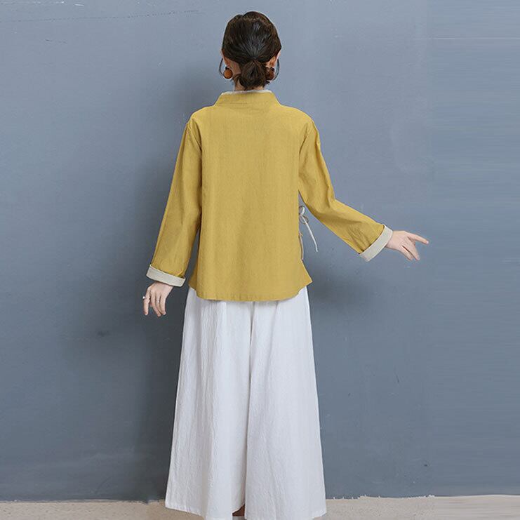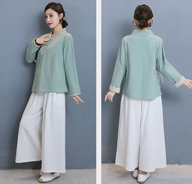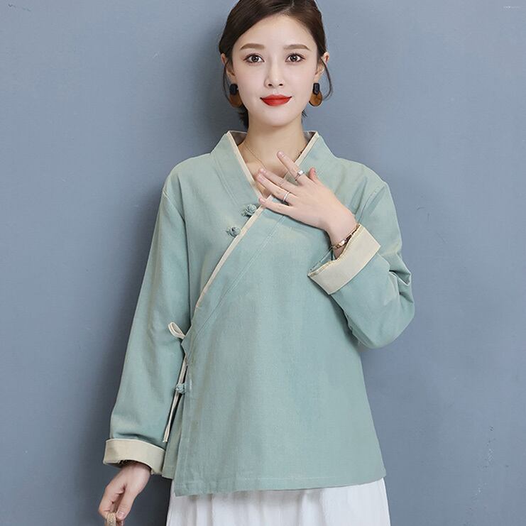 チャイナ服 普段着 秋冬 落ち着いた風合い 無地 長袖トップス 中国茶 衣装 zt401