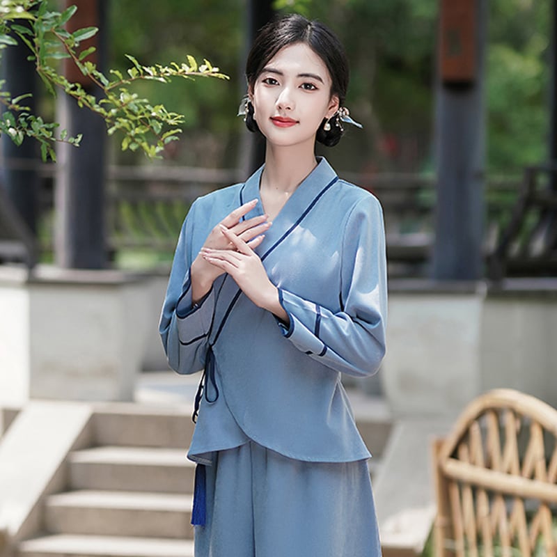 トップスも普段着も揃うチャイナ服専門店chaiです。こちらはチャイナ服 普段着 無地 斜め合わせ 長袖トップス 中国茶 衣装 zt402の商品ページです。落ち着いた風合いのチャイナトップスで、中国茶や二胡の衣裳にもぴったりのアイテムです。