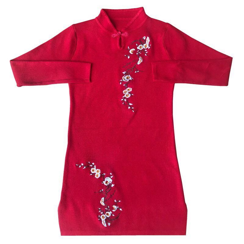 チャイナドレス チャイナ服 ワンピース 暖か ニット 刺繍 zs236
