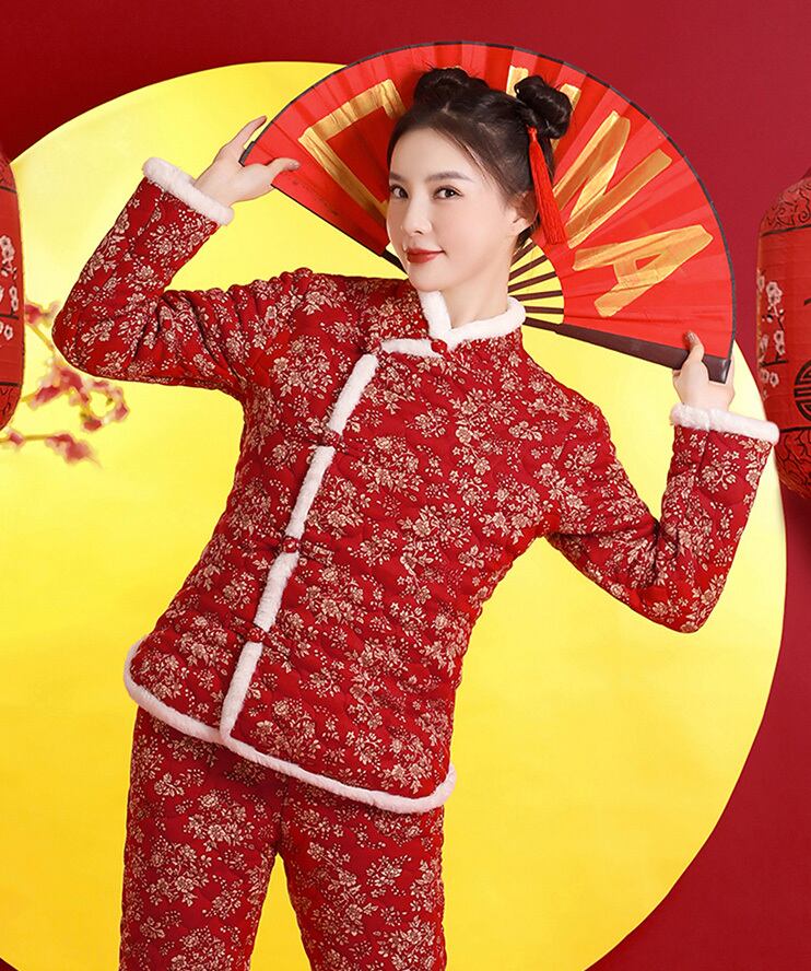 チャイナ服 上下セット 長袖トップス パンツ 厚手 暖か リラックス zw50