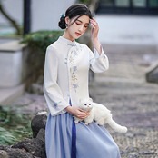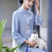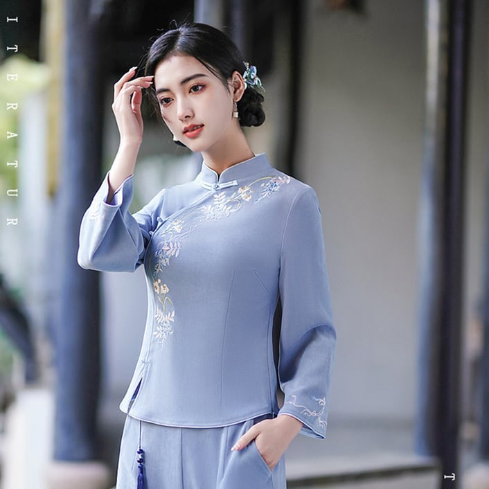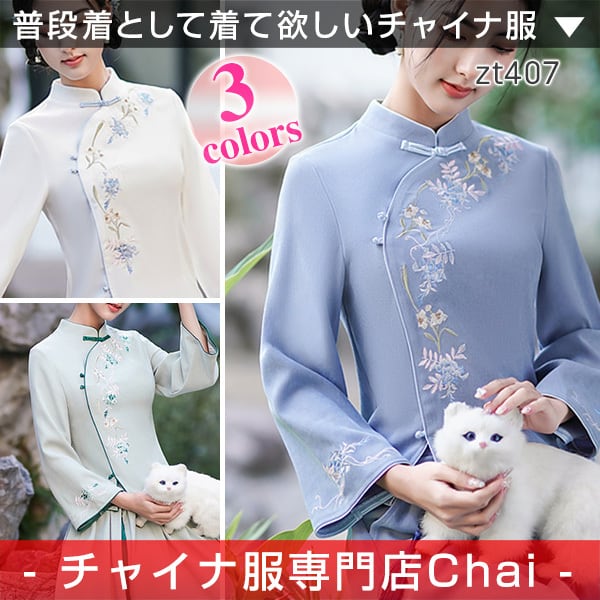 トップスも普段着も揃うチャイナ服専門店chaiです。こちらはチャイナ服 トップス 長袖 刺繍 装飾トップス 中国茶 二胡 衣装 zt407の商品ページです。刺繍の素敵なチャイナトップスで、中国茶や二胡の衣裳にもぴったりのアイテムです。