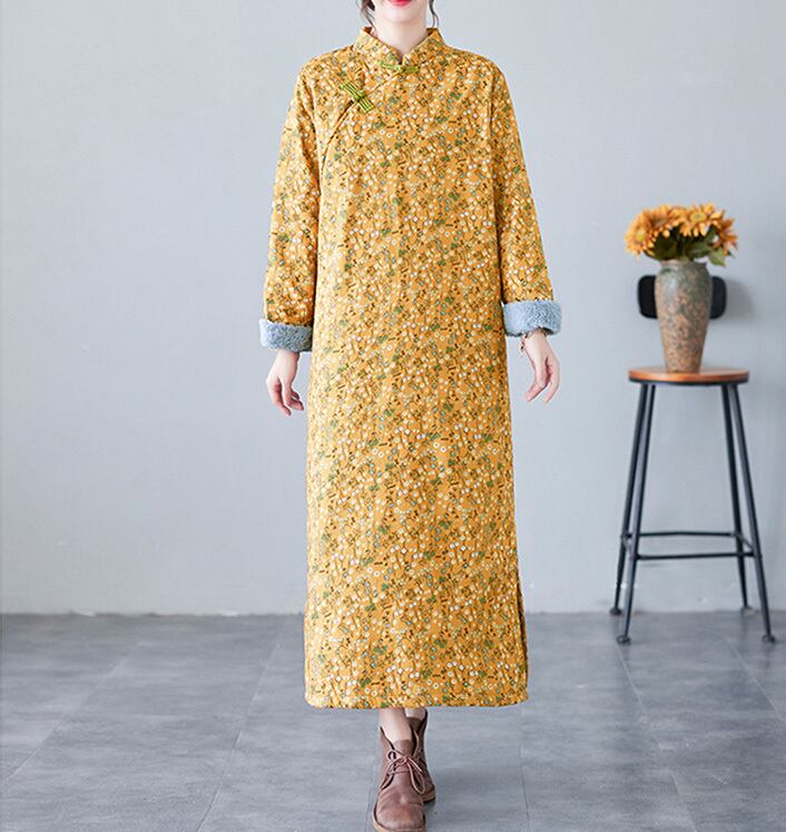 チャイナドレス 普段着 ロングワンピ 秋冬 あたたか裏ボア zl321