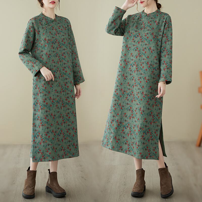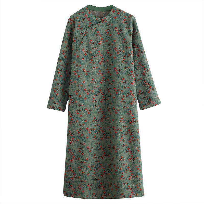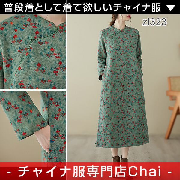 トップスも普段着も揃うチャイナ服専門店chaiです。こちらはチャイナ服 普段着 ロングワンピ 素朴な風合い 葉柄 秋冬 長袖 ゆったり zl323の商品ページです。葉柄のロングチャイナワンピで、素朴な風合いが素敵な秋冬の普段着チャイナファッションにちょうどよいアイテムです。