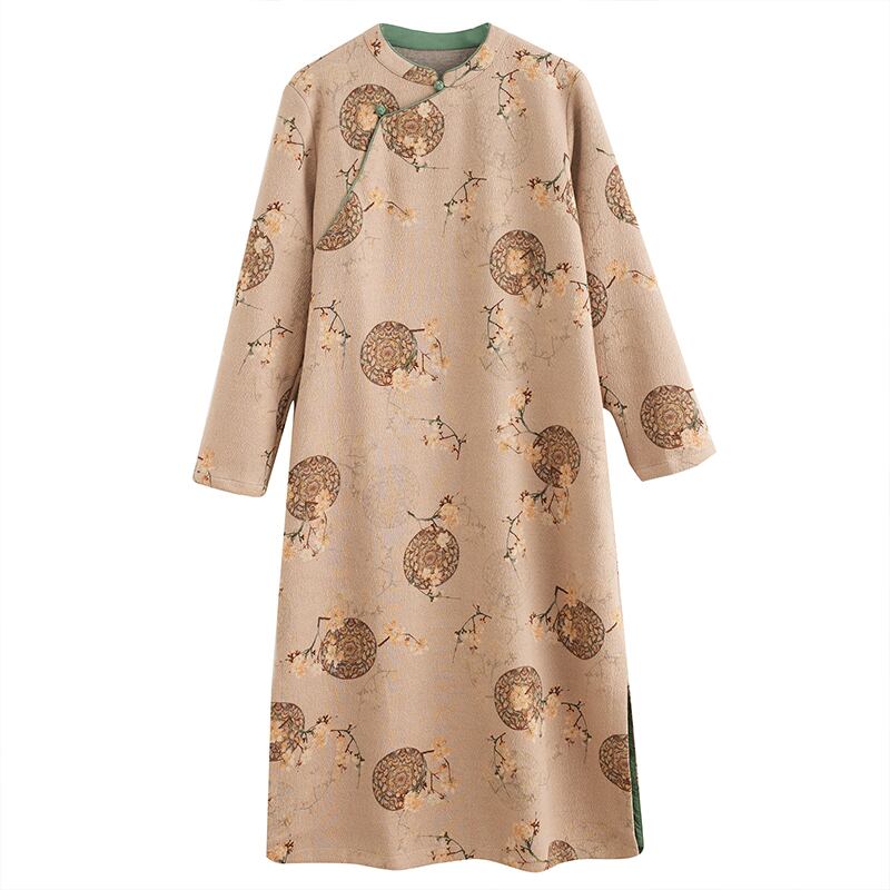 チャイナ服 普段着 ロングワンピ 素朴な風合い 秋冬 厚手 長袖 ゆったり zl325