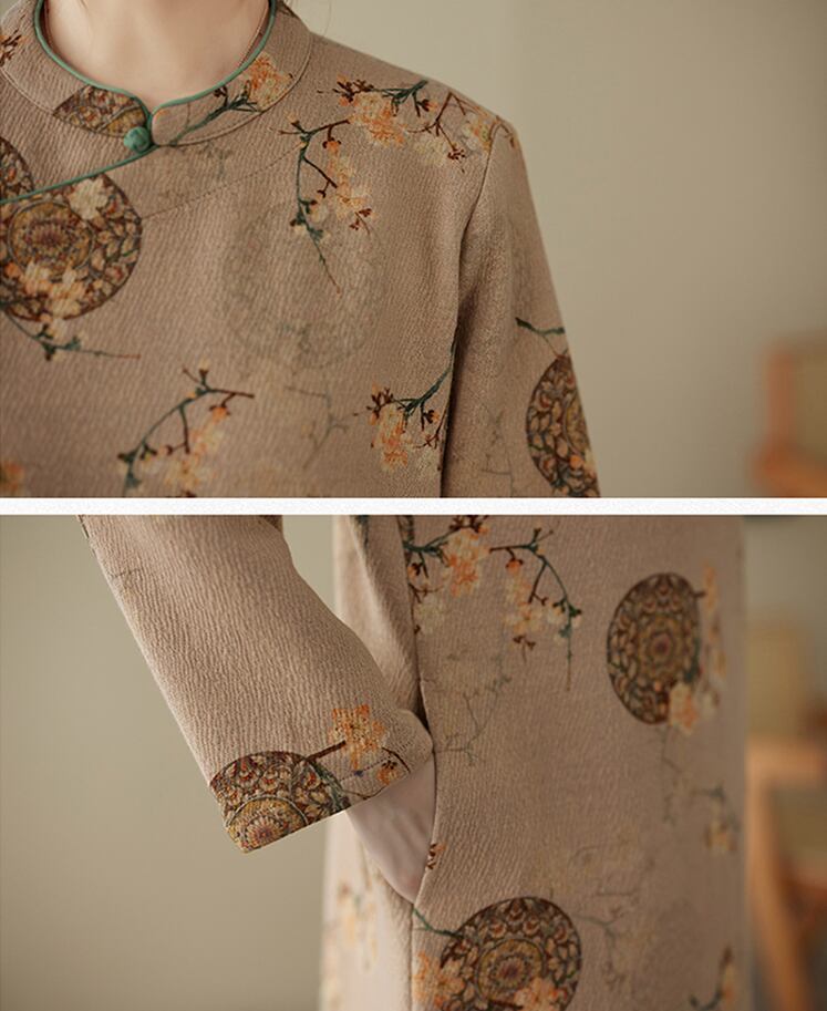 トップスも普段着も揃うチャイナ服専門店chaiです。こちらはチャイナ服 普段着 ロングワンピ 素朴な風合い 秋冬 厚手 長袖 ゆったり zl325の商品ページです。素朴な風合いが素敵なロングチャイナワンピで、秋冬の普段着チャイナファッションにちょうどよいアイテムです。