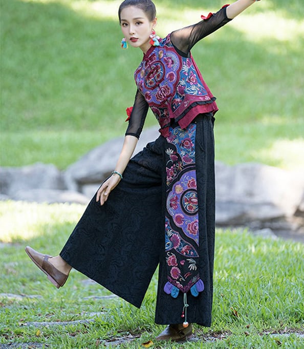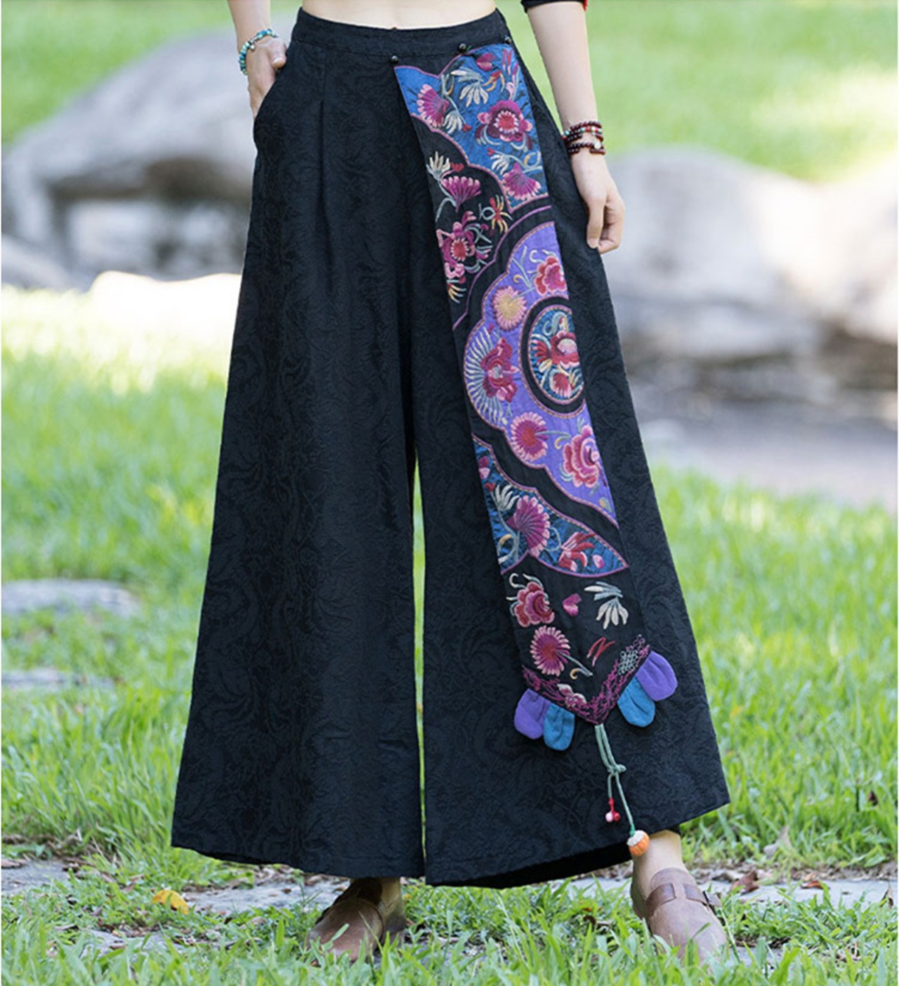 チャイナ服 パンツ 装飾パンツ ワイドパンツ 刺繍 zb185