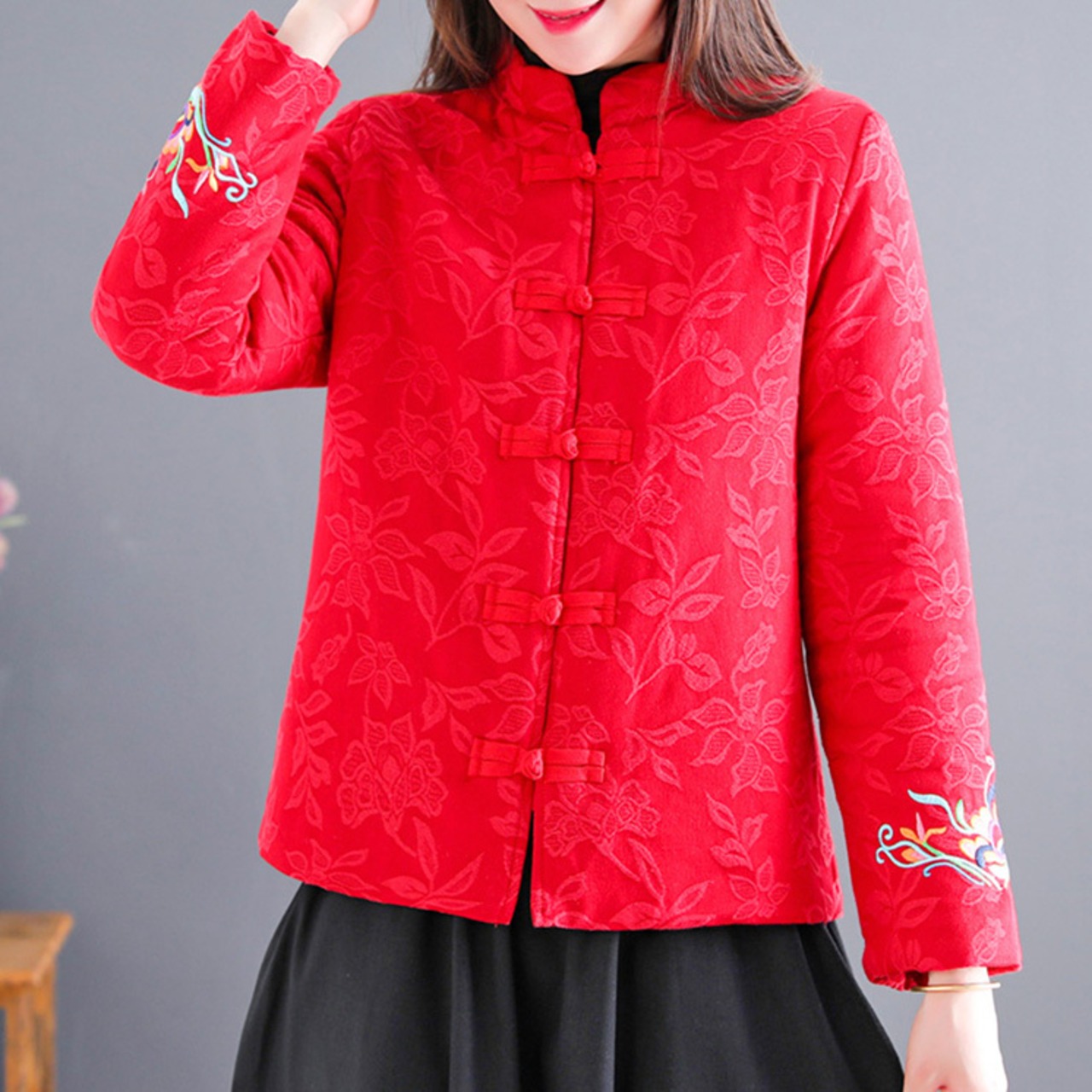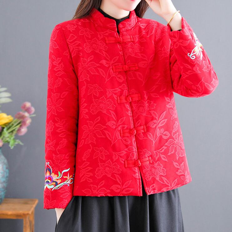 チャイナ服 トップス 前開き 秋冬 刺繍 中国服 チャイナボタン zt415