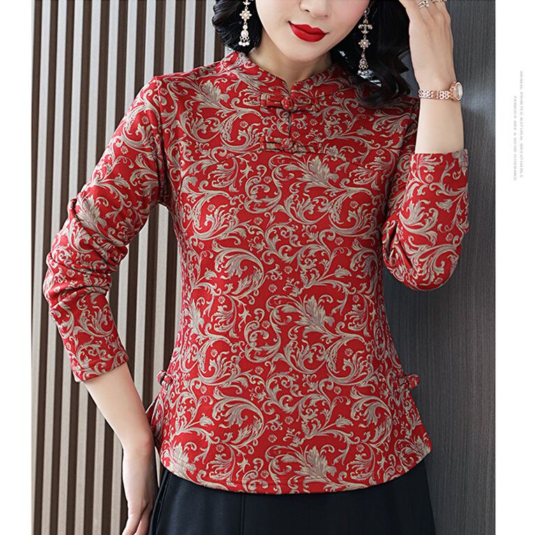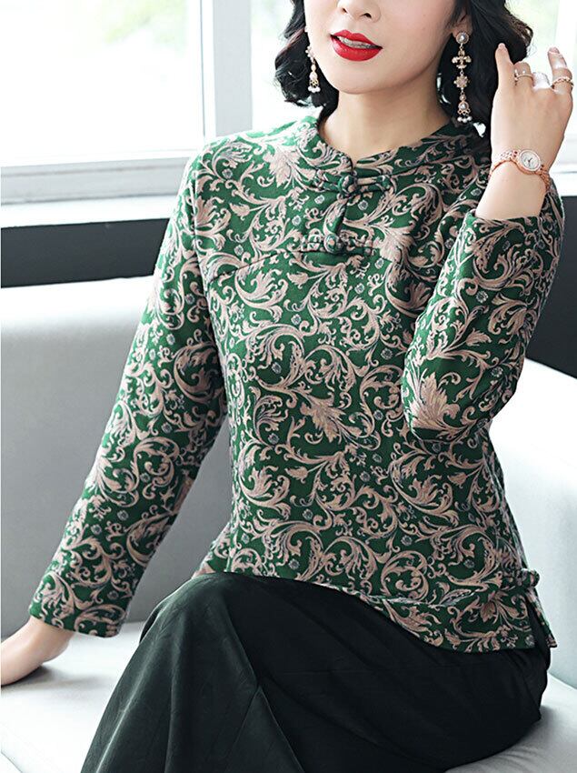 チャイナ服 トップス 長袖 総柄 チャイナボタン 3色 zt417