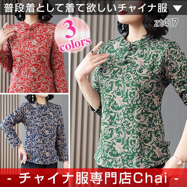 トップスも普段着も揃うチャイナ服専門店chaiです。こちらはチャイナ服 トップス 長袖 総柄 チャイナボタン zt417の商品ページです。雅な柄が素敵なチャイナトップスで、二胡演奏や舞踏などのチャイナ衣装にぴったりのアイテムです。