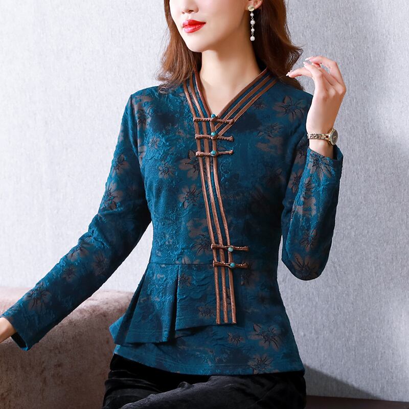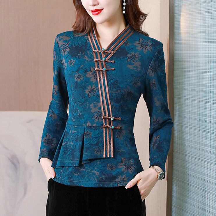 チャイナ服 トップス 長袖 高級感 雅なシンメトリー 民族風トップス zt418