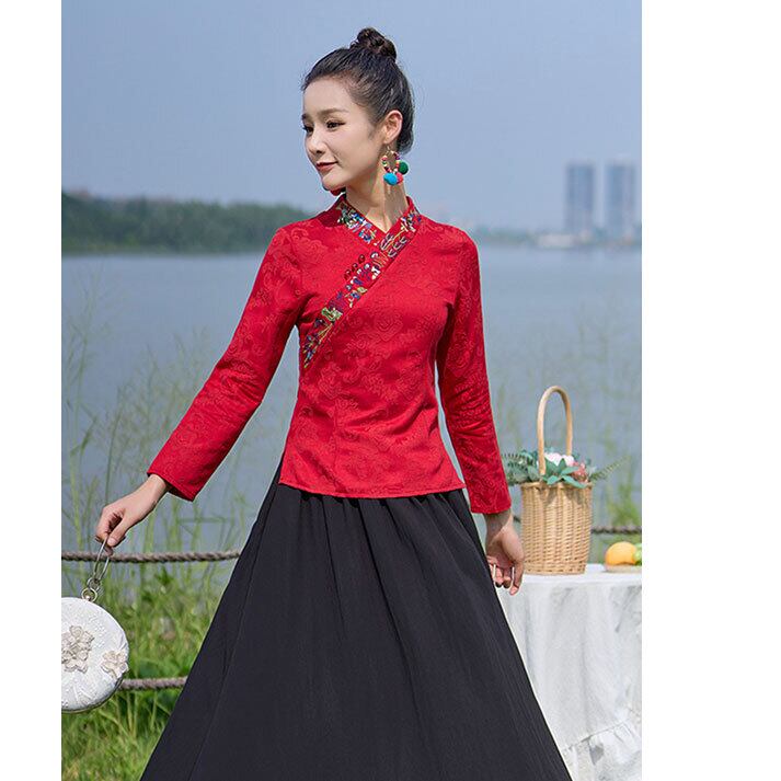 チャイナ服 トップス 長袖 刺繍 民族風トップス zt421