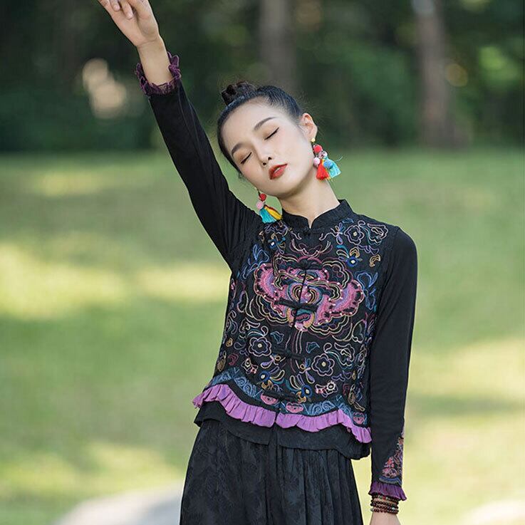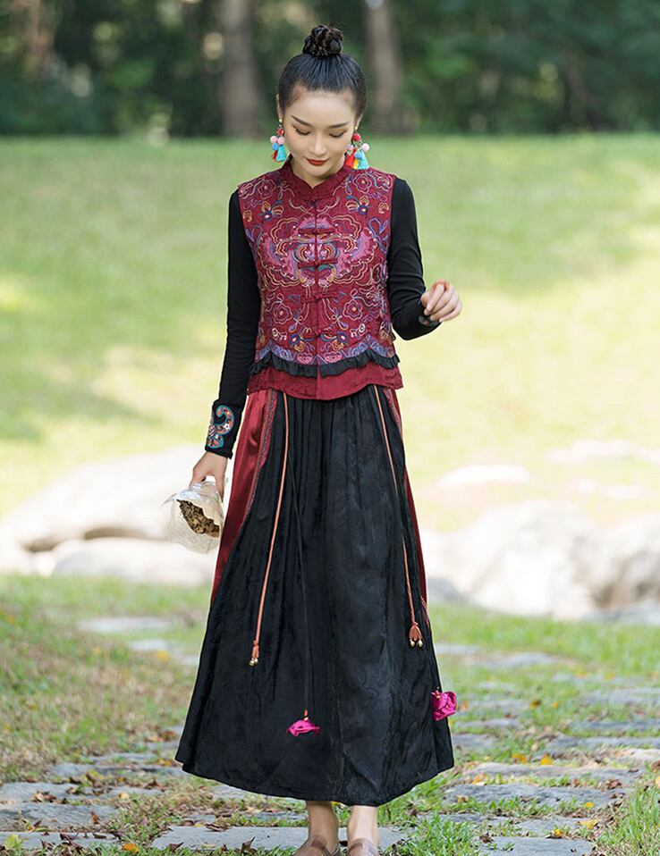 チャイナ服 トップス 刺繍 ベスト ジレ 袖なし ノースリーブ zv50