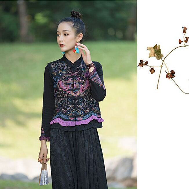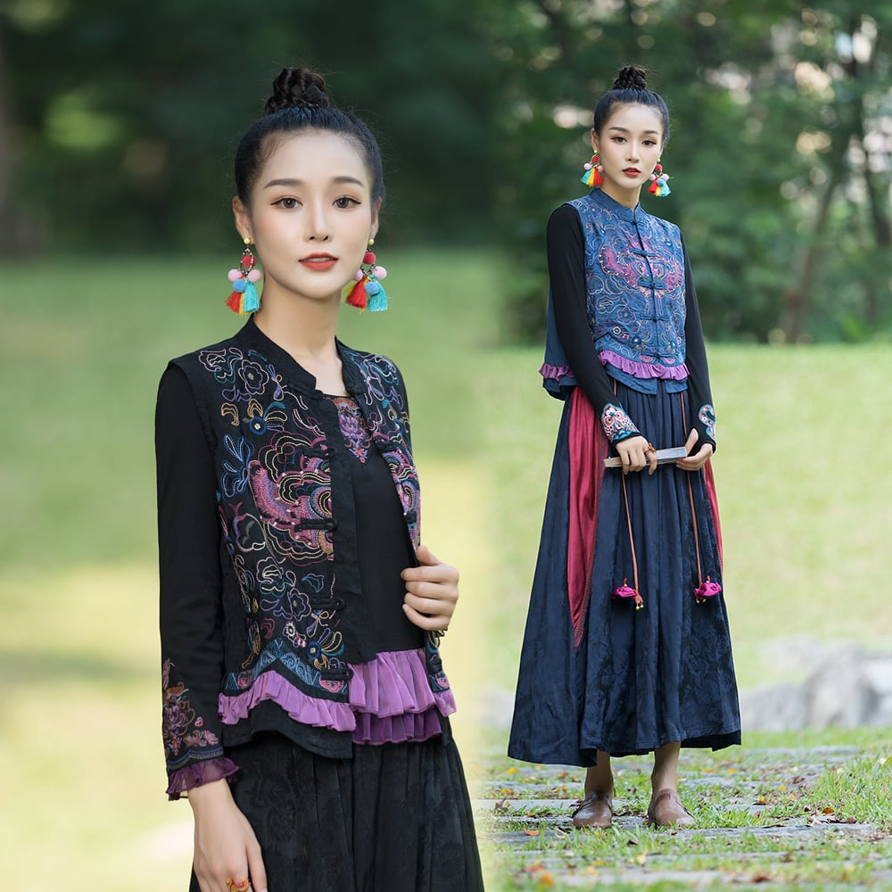 トップスも普段着も揃うチャイナ服専門店chaiです。こちらはチャイナ服 トップス 刺繍 ベスト ジレ 袖なし ノースリーブ zv50の商品ページです。刺繍の凝った袖のない薄手のジレで、チャイナファッションの重ね着にぴったりのトップスです。