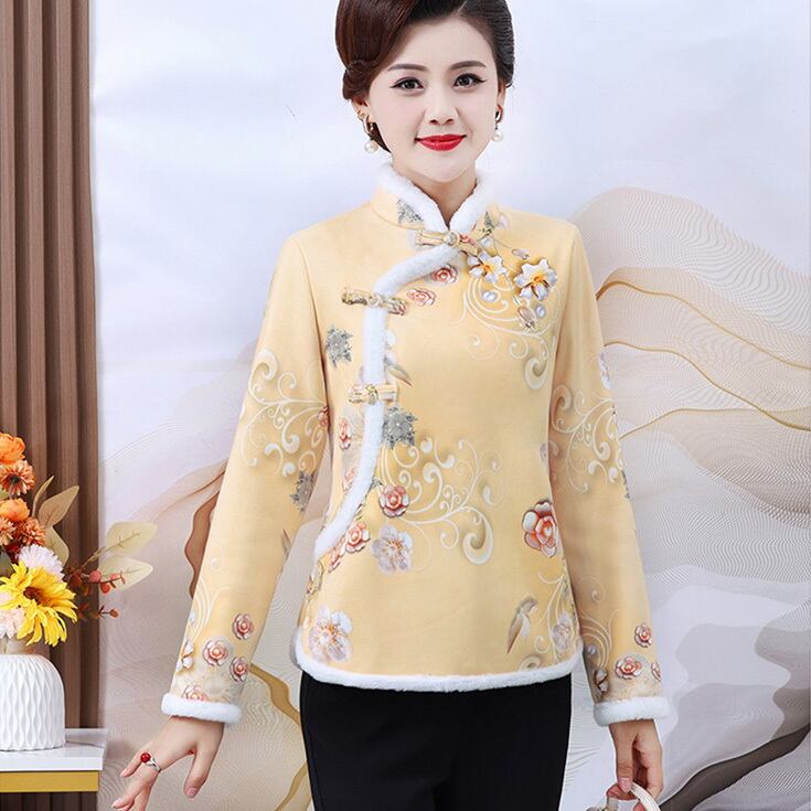 チャイナ服 普段着 長袖 上品な風合い 秋冬 厚手 ファー zt426
