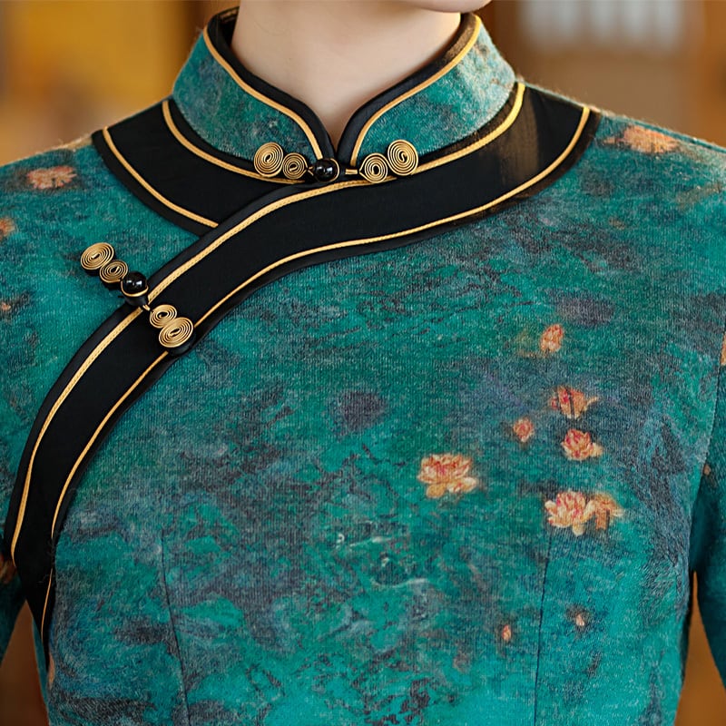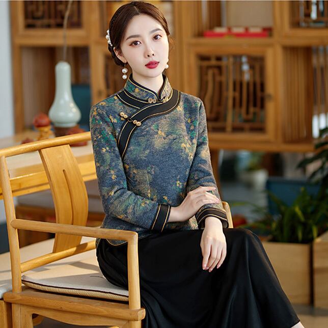 チャイナ服 普段着 長袖 上品な風合い 秋冬 厚手 zt427