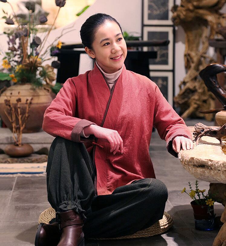 チャイナ服 普段着 落ち着いた風合い 斜め合わせ 茶服 禅 二胡衣装 zt430