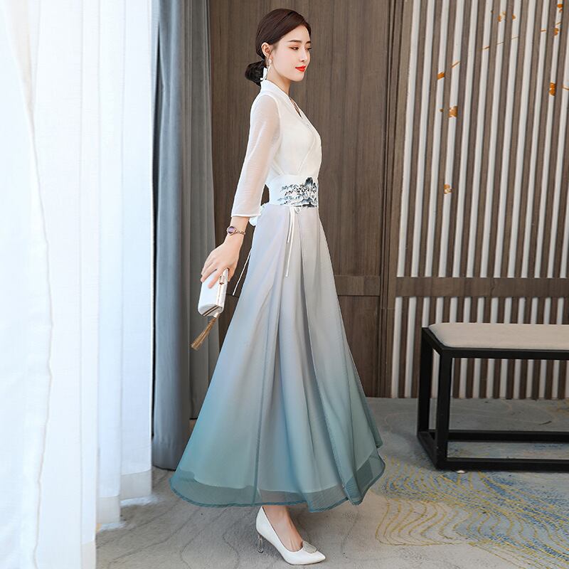 チャイナドレス ロングワンピ 春夏 上品な風合い 秋冬 七分袖 グラデーション zl339