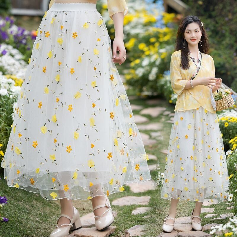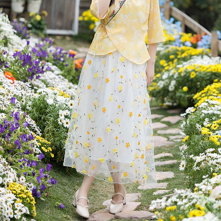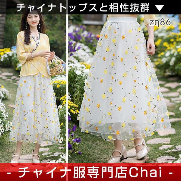 チャイナ服 スカート 爽やかな風合い 花柄 Aライン ウエストゴム 普段着チャイナ zq86