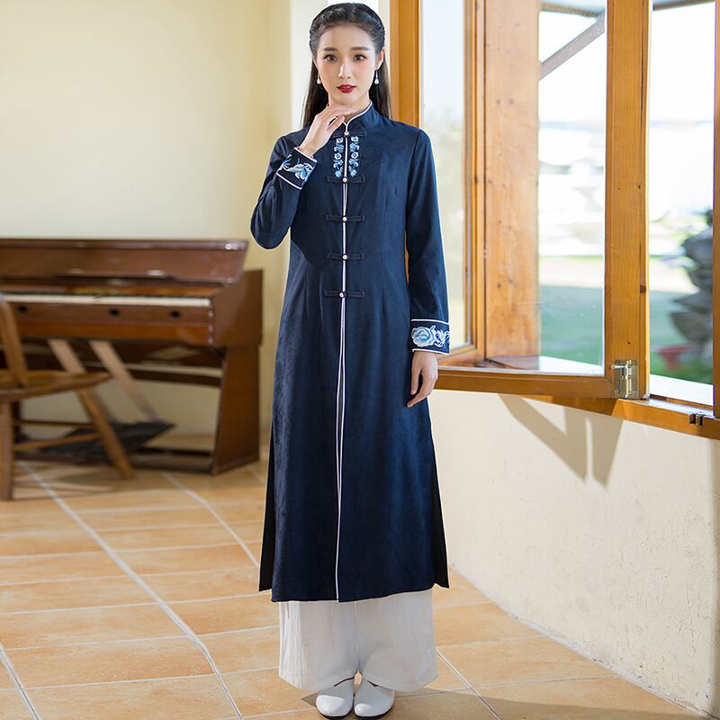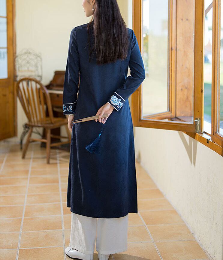 チャイナドレス ロングワンピ 上品な風合い 刺繍 長袖 前開き zl340