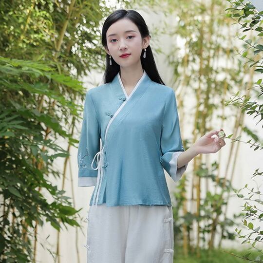 チャイナ服 トップス 春秋 斜め合わせ 七分袖 普段着チャイナ 二胡衣装 中国茶 禅 zh397