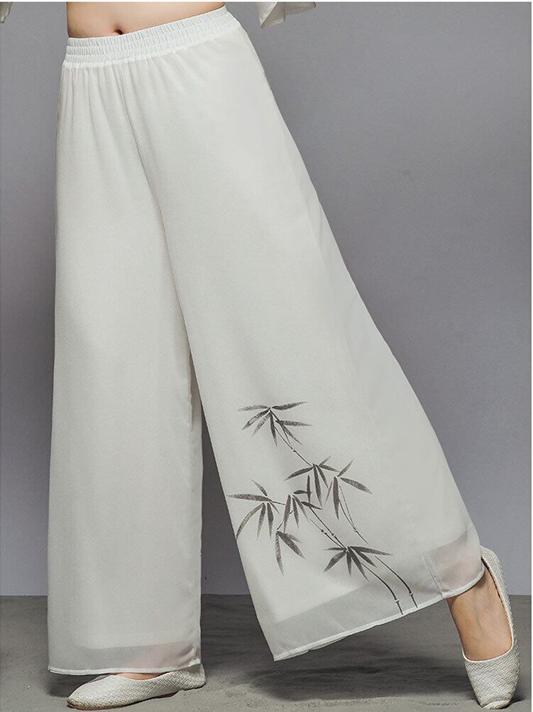 チャイナ服 パンツ シフォン ワイドパンツ 薄手 春夏 zb192