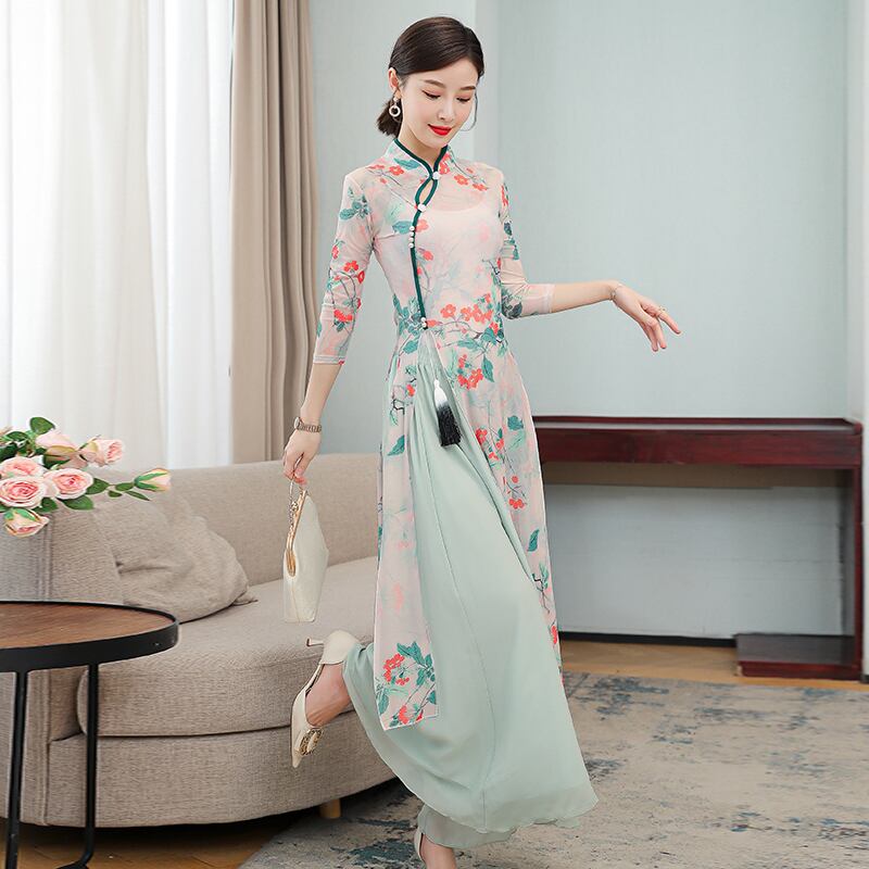 トップスも普段着も揃うチャイナ服専門店chaiです。こちらはチャイナ服 上下セット 春夏 トップス ワイドパンツ セットアップ 七分袖 zw51の商品ページです。とてもお買い得なトップスとパンツの上下セットで、薄手で春夏にちょうどよいチャイナアイテムです。