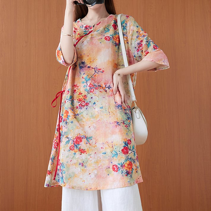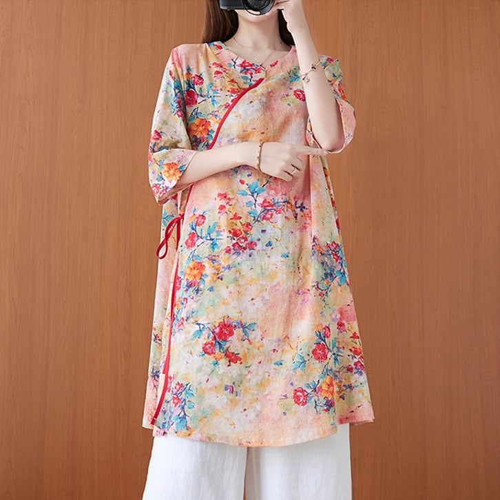 チャイナ服 トップス 春夏 素朴な風合い ロング丈 ゆったりシルエット 普段着チャイナ zh402