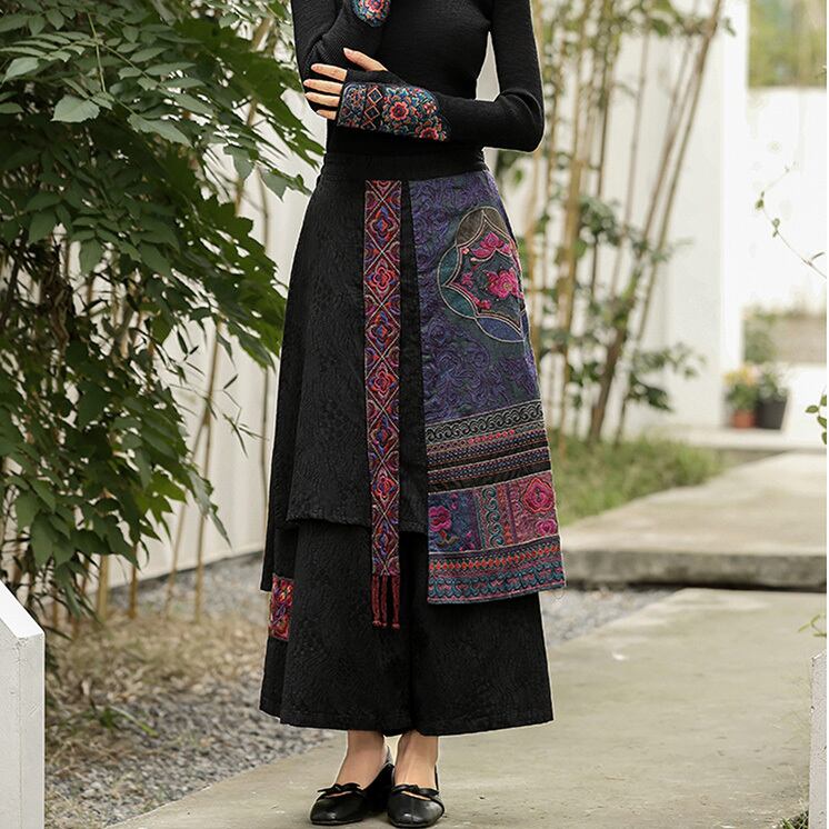 チャイナ服 パンツ ワイドパンツ 凝った刺繍 民族衣装 上品な風合い 普段着 zb195